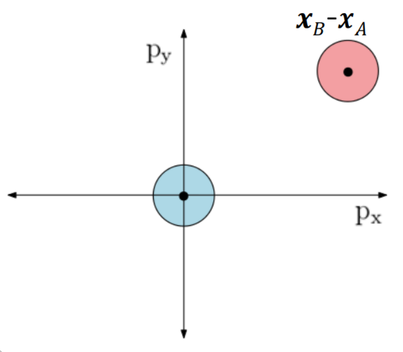Now if you translate this space so that \(A\) is centered at the origin and \(B\) is at position \(x_{b}-x_{a}\).