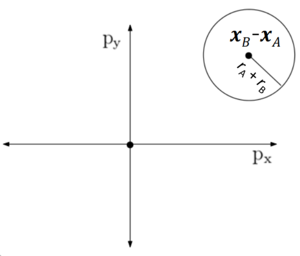By doing this you calculate the Minkowski sum. Remember the Minkowsi sum \(X \oplus Y = \{ x + y | x \in X, y \in Y \}\). So if \(X\) is the position of \(A\) (\(\{[0, 0]\}\)), and \(Y\) is the position of \(B\) (\(\{[1, 1]\}\)). Then \(X \oplus Y = \{[1, 1]\}\).